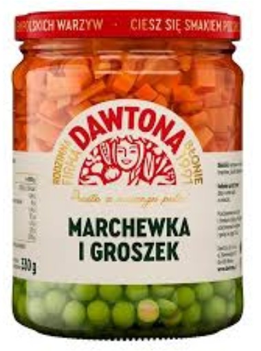 Netokaal ilma vedelikuta 330g. Pastöriseeritud toode. Koostisosad: vesi, porgand 32%, roheline hernes 32%,suhkur, sool.Parim enne vaata kaanelt. Hoiustada kuivas ja jahedas. Avatult tarbida 48 tunni jooksul. Toitumisalane teave 100g kohta: energiasisaldus: 233kj/53kcal, rasva 0,6g, küllastunud rasvhappeid 0g,
