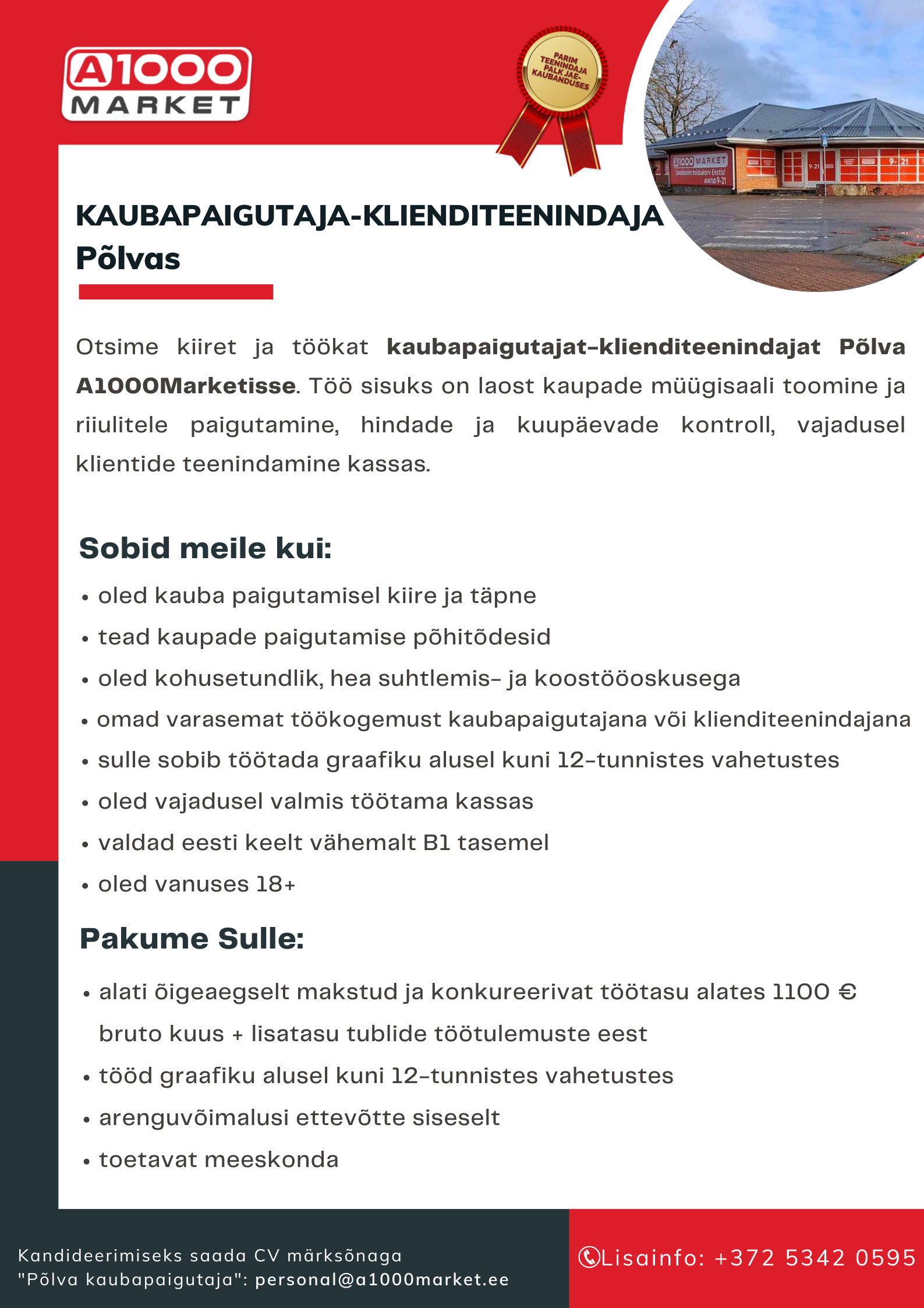 A1000Market ootab oma ridadesse motiveeritud, töökaid ja teotahtelisi inimesi. Kui soovid kandideerida siis ootame Sinu sooviavaldust koos CV-ga läbi alloleva vormi.